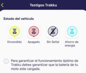 Los colores del ícono de Trakku indican el estado de tu vehículo de la siguiente manera: